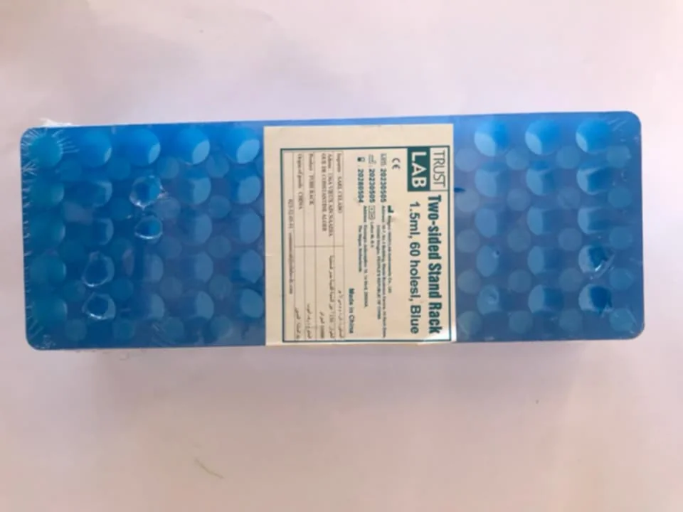 Portoir double face pour tubes de centrifugation 1,5 ml, capacité 60 emplacements, idéal pour l’organisation et le stockage en laboratoire.